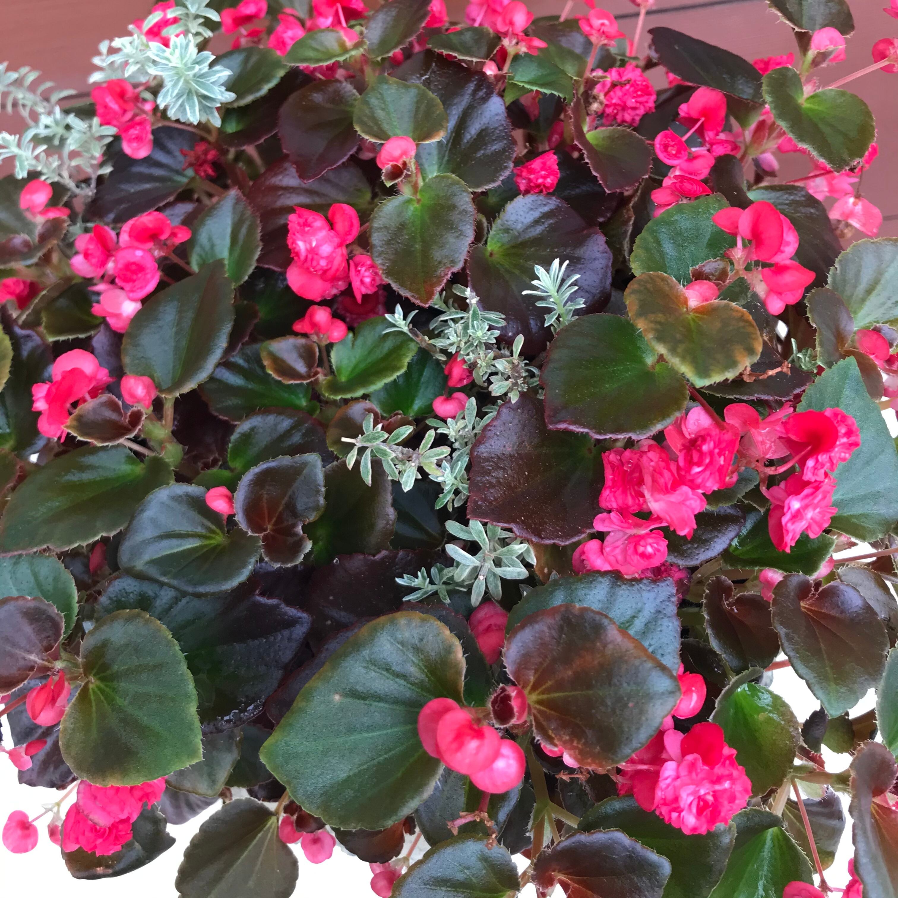 アンティーク風浅めのカップ型ポットに、銅葉が素敵なベゴニアタブレットを植えました。