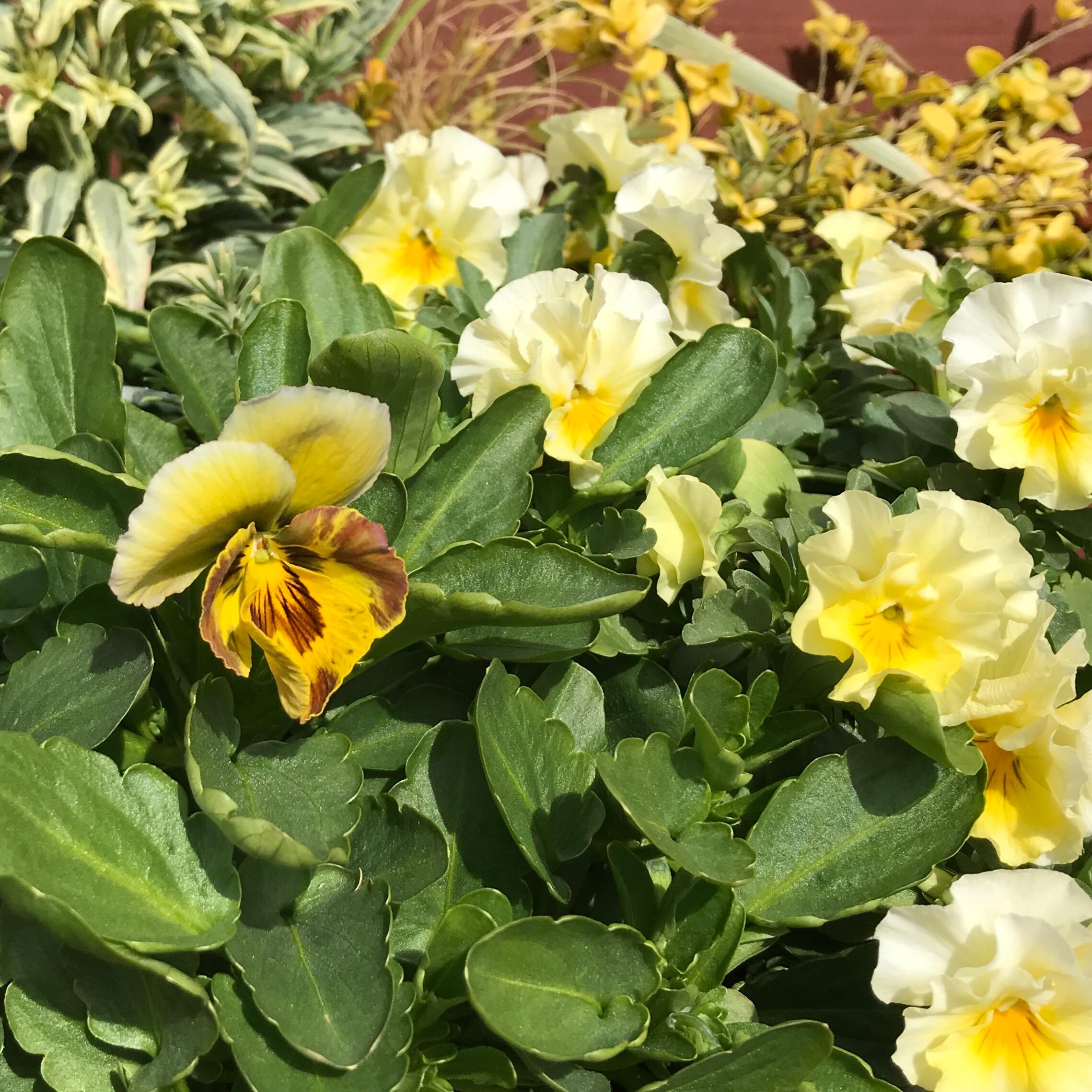 お写真を撮った時にビオラの幻夢が咲いていないのですが、イエローにブルー系のお色が入った個性的なビオラです。