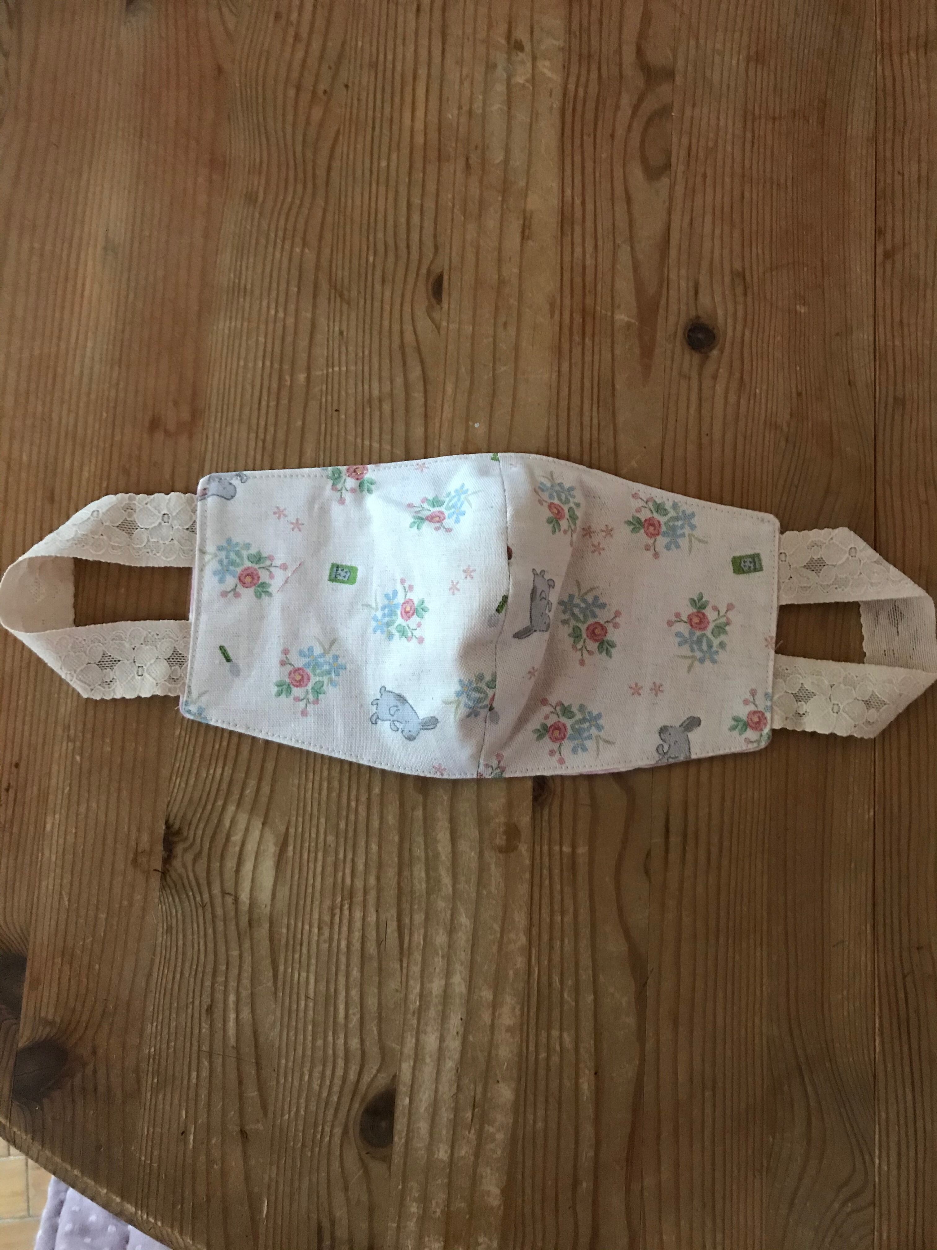 レースゴムタイプのマスクは少し緩めに作っているので、緩すぎる時はレース部分をひとつまみして調節して下さいね。