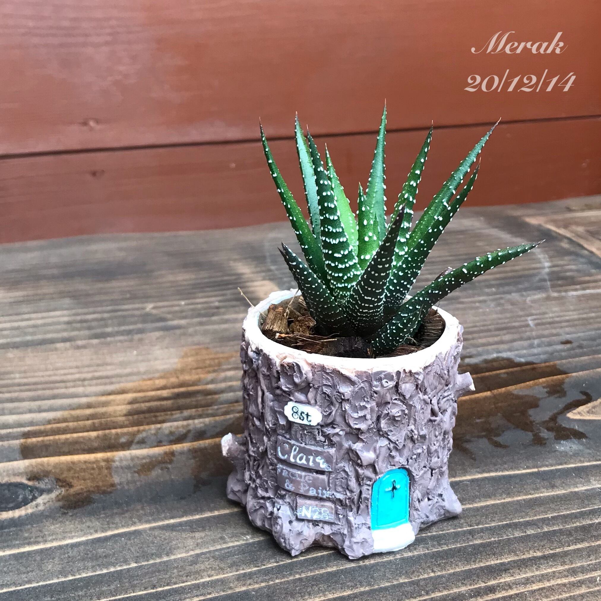 切り株風ミニポットに多肉植物を植えました。