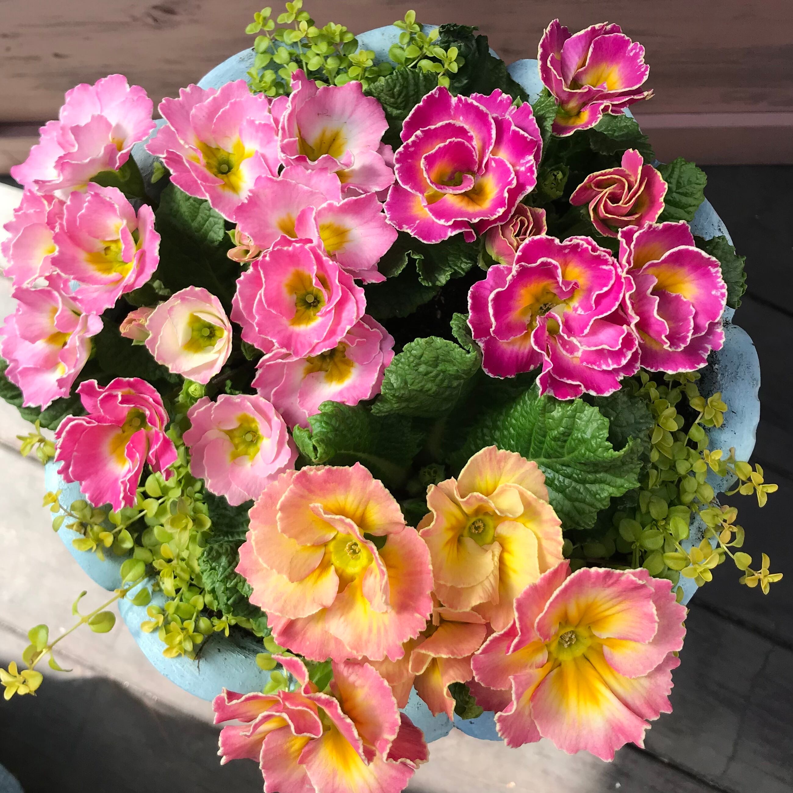 フリルが可愛い大きなお花のプリムラりぼんを植えました。