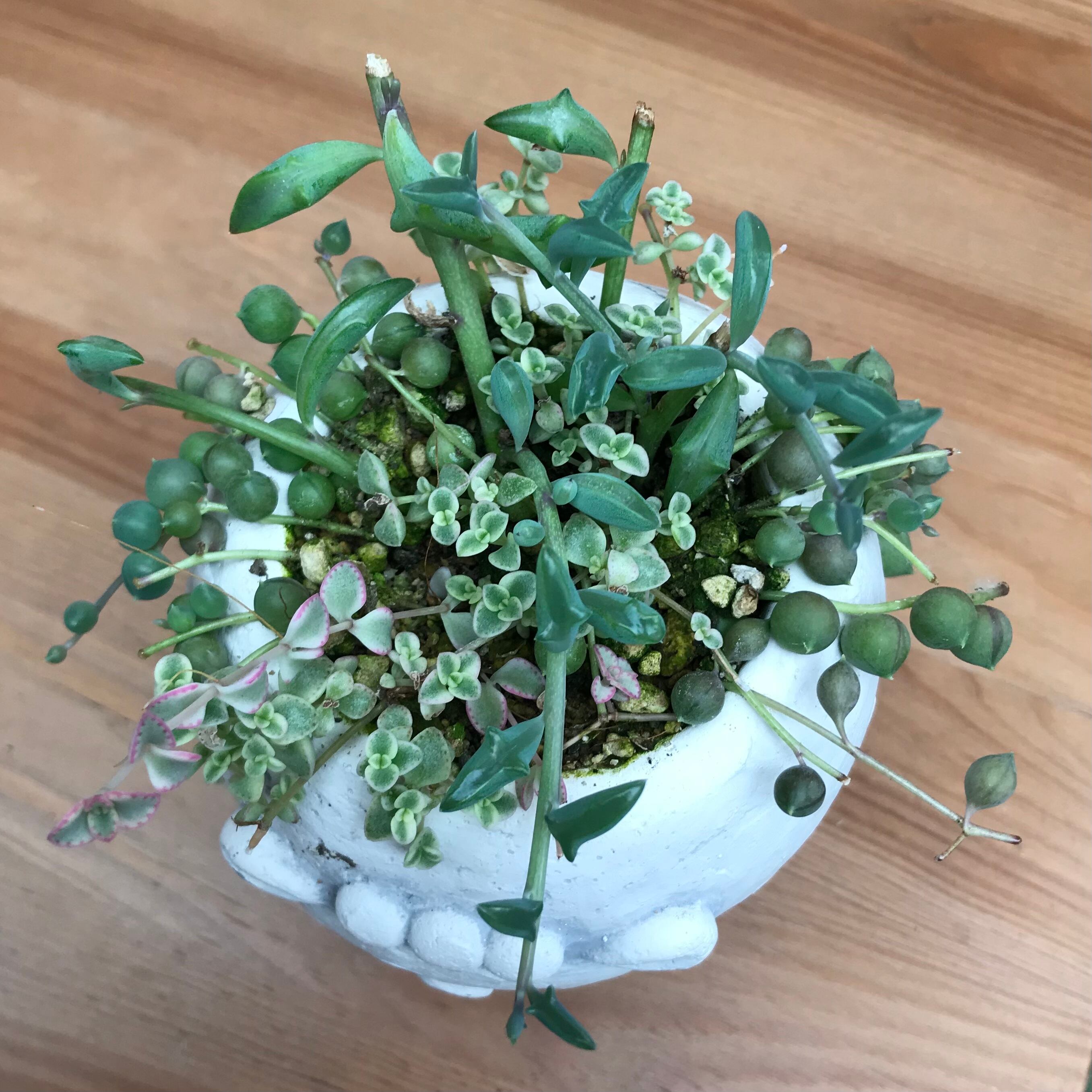 ヒツジさんの毛をイメージして垂れる系多肉植物寄せ植えを作りました。